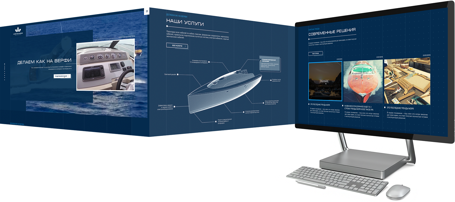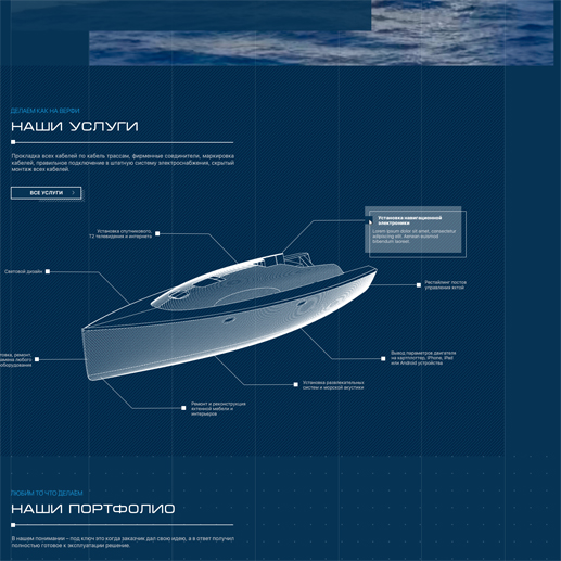 Создали стильный и современный дизайн в морской тематике, сделав невербальный акцент на главной специализации компании – модернизации моторных яхт