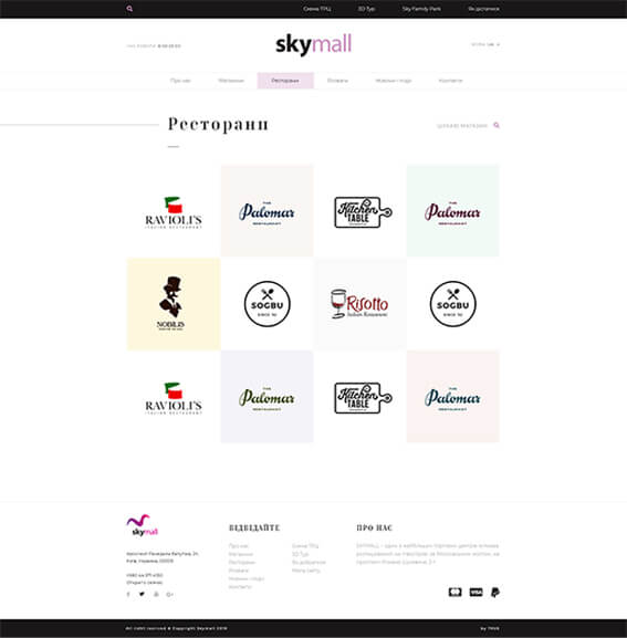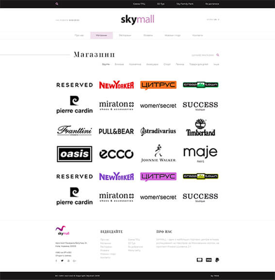 Теперь, чтобы найти нужную информацию, не обязательно быть детективом. В самом верху есть разделы «Магазины», «Рестораны», «Развлечения» и удобная карта ТРЦ, по которой можно найти все и сразу.
