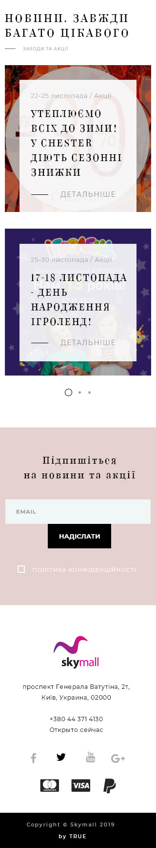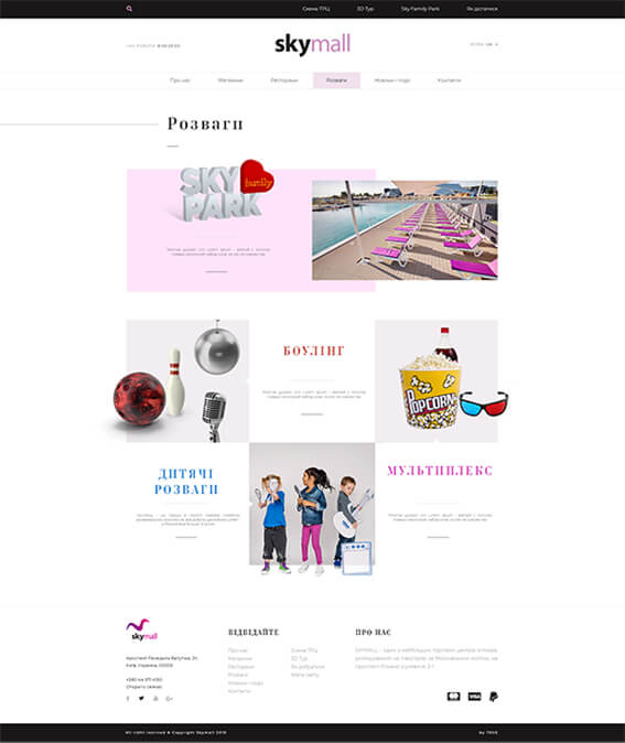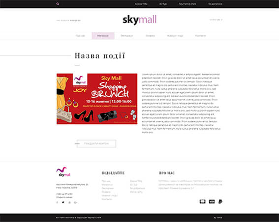 Никто не опоздает и не промахнется. На сайте есть вся информация о магазинах и развлекательных объектах: локация, время работы и контактные данные.