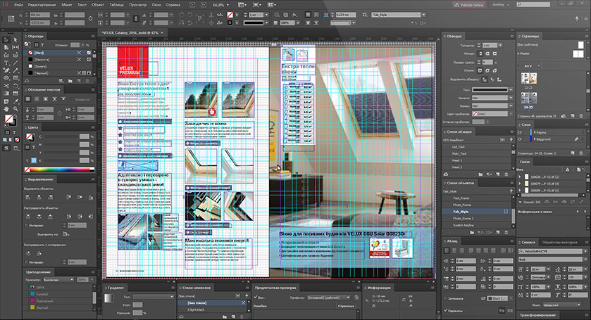 Сверстать многостраничный каталог продукции для ТМ “Velux” с использованием последних трендов в Европейском дизайне